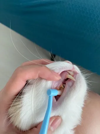 특히 아기 고양이 때는 무리하게 칫솔을 사용하지 말고 깨끗한 물을 묻힌 거즈로 잇몸을 살살 닦아주는 정도면 충분해요.
